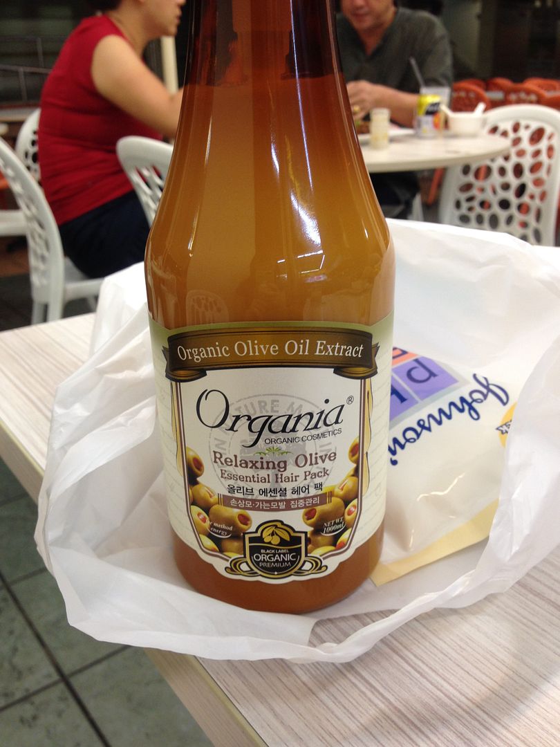 Organia Relaxing Olive Essential Hair Pack as conditioner right now.